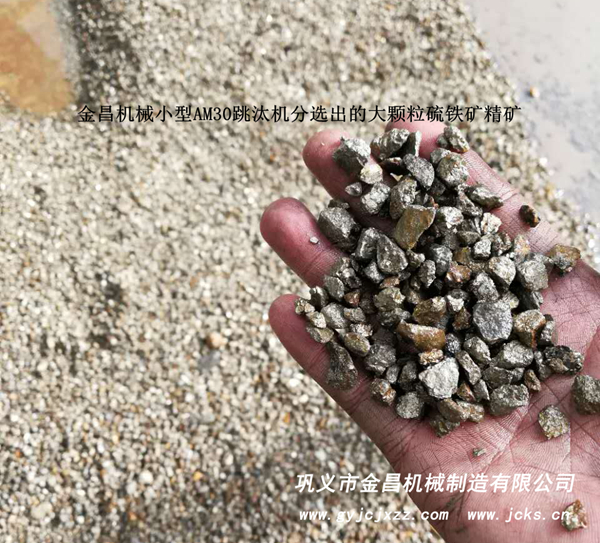 細(xì)破破出來以后,一般都是50毫米以下的顆粒,只要這種狀態(tài)下雜石和硫鐵礦分離了,那么就可以用跳汰機(jī)分選的。效果怎么樣呢?這點(diǎn)您是可以放心的,因?yàn)榱蜩F礦的比重較大,而脈石的比重較小,兩者有明顯的比重差,跳汰機(jī)就是根據(jù)物體比重差分選的設(shè)備,比重差越大,分選的效果就越好,硫鐵礦和廢石的比重差就很大,所以分選起來自然是比較輕松的。